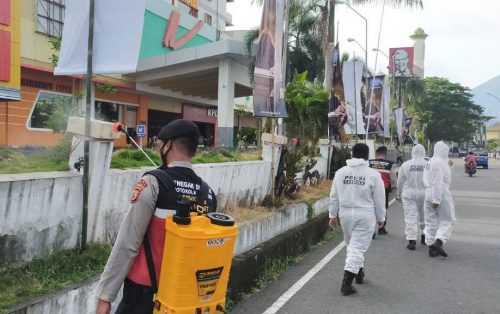 Salah satu upaya yang dilakukan adalah dengan melaksanakan menyemprotan cairan disinfektan di beberapa lokasi-lokasi pelayanan publik, fasilitas publik, tempat ibadah serta tempat-tempat berkumpul masyarakat lainya.