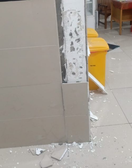 Sementara dalam Rekaman video berdurasi 0.22 detik, terlihat dalam ruangan Rumah Sakit berantakan dan terjadi retak pada dinding Gedung.