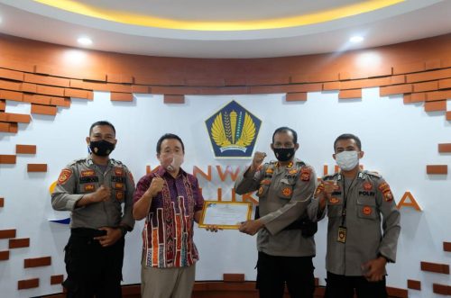 Penganugerahan piagam penghargaan yang dilaksanakan pagi tadi di Kantor Kanwil Direktorat Jenderal Perbendaharaan (DJPb) Provinsi Maluku Utara, Kelurahan Jati Kota Ternate, langsung diberikan oleh Kepala Kanwil, Bayu Andy Prasetyo, S.E, M.Si kepada Dirsamapta Polda Malut yang diwakili Kabag Bin Opsnal Ditsamapta Polda Malut, AKBP Faruk Alkatiri, Jumat (23/4/2021).