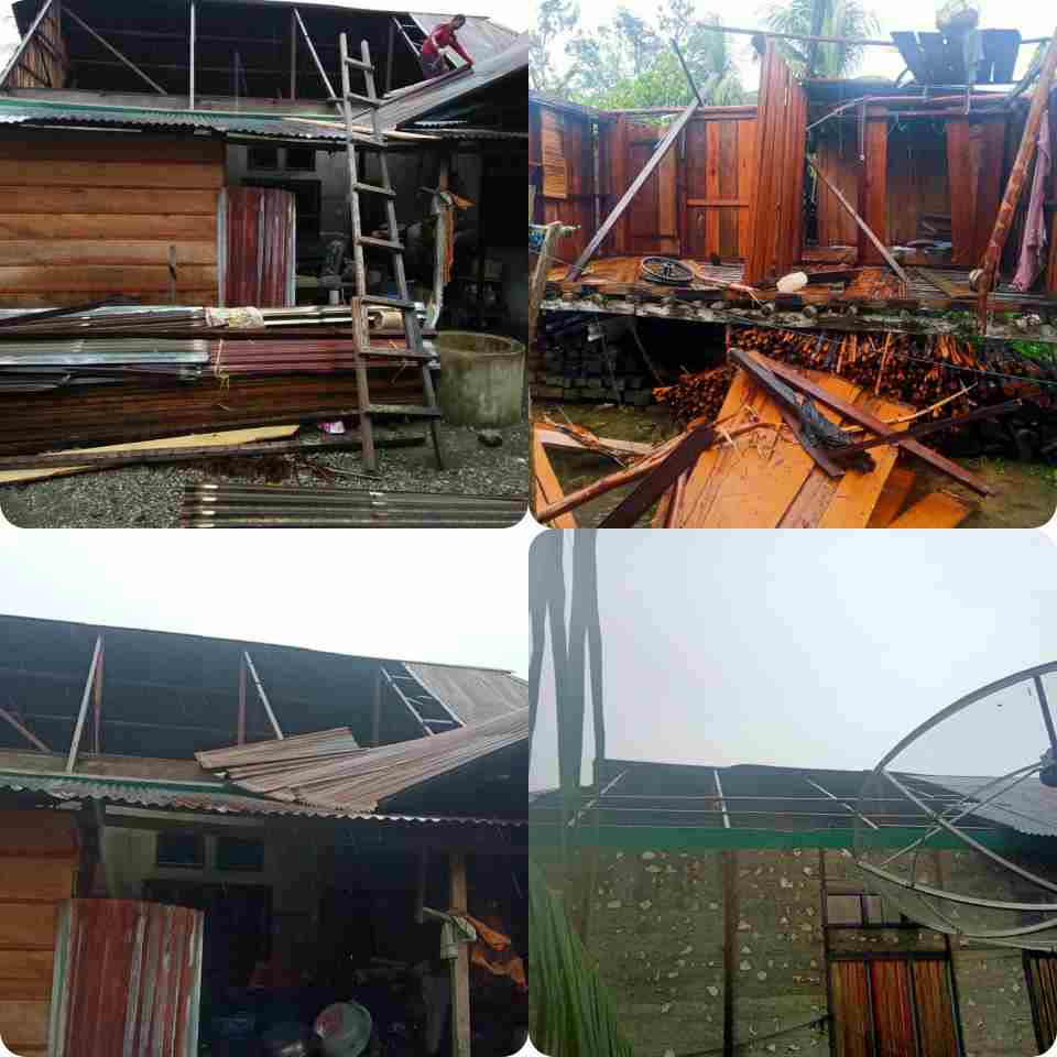 Diketahui puluhan rumah warga yang rusak itu ada rusak Ringan, Sedang dan rusak Berat, sedangkan pepohonan yang tumbang itu termasuk tanaman warga yaitu pohon kelapa dan cengkih.