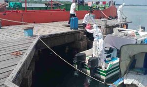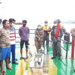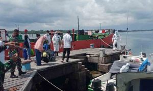 Evakuasi 5 Orang Pasien positif Covid 19 oleh Puskesmas Kayoa dengan dibackup oleh Personil koramil 1509-05/kayoa dan pemerintah Kecamatan dengan menggunakan Speed Boat bernama Stella milik Puskesmas Kayoa,