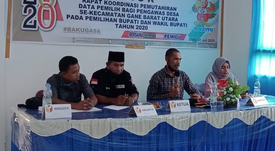 HALSEL, CN – Panwaslu Kecamatan Gane Barat Utara (Garut) melaksanakan kegiatan Rapat Koordinasi untuk mengoptimalkan fungsi pengawasan pada jajaran Pengawas Pemilu Lapangan (PPL) se-Kecamatan Gane Barat Utara untuk melakukan perisapan pengawasan pemutakhiran data dan penyusunan daftar pemilih pada pemilihan bupati dan wakil bupati kabupaten halmahera selatan Tanggal 9 Desember Tahun 2020. Pada Minggu (5/7/2020) bertempat di gedung pertemuan di Desa Dolik.