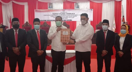 HALSEL, CN – Komisi Pemilihan Umum (KPU) Kabupaten Halmahera Selatan (Halsel) menetapkan secara resmi pasangan Hi. Usman Sidik dan Hasan Ali Bassam Kasuba sebagai Bupati dan Wakil Bupati Halsel periode 2021-2026.
