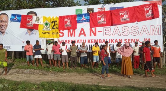 HALSEL, CN – Pasangan Calon Bupati dan Calon Wakil Bupati Usman Sidik-Bassam Kasuba kembali Lounching Alat Peraga Kampanye (APK) Baliho persiapan Pemilukada Halsel 2020 di Desa Jiko Kecamatan Mandioli Selatan.