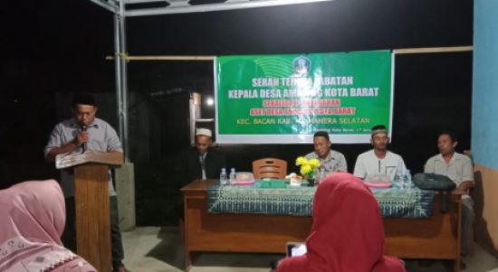 Pelaksanaan kegiatan Sertijab yang dilakukan Pemdes Amasing Kota Barat berlangsung di Aula Kantor Desa Jalan Paisu Tutupa RT 01. Ikut hadir, Camat Bacan Ibnul Mubarak Iskandar Alam, Ketua BPD Amasing Kota Barat, Tamrin Wandi, Kades terpilih Muslim Yusuf dan Tokoh masyarakat serta seluruh masyarakat Amasing Kota Barat.
