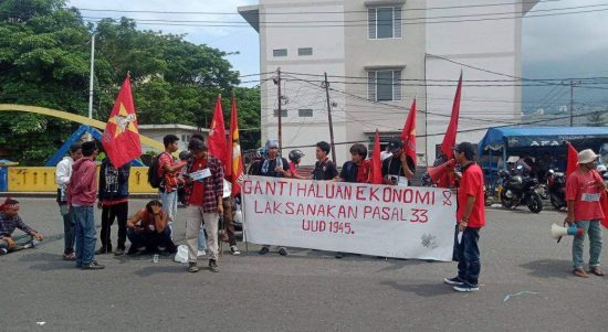 Ternate, CN – Liga Mahasiswa Nasional Untuk Demokrasi (LMND) Kota Ternate bersama Eksekutif Wilayah LMND Maluku Utara, gelar aksi peringati hari lahirnya Pancasila yang jatuh pada tanggal 1 Juni 2022. Sementara aksi yang di gelar pada Kamis (02/06), dengan isu sentral, “Ganti Haluan Ekonomi dan Laksanakan Pasal 33 UUD 1945” dengan rute aksi, RRI Cabang Kota Ternate, Pasar Barito Kota Ternate dan Kantor Walikota Ternate.