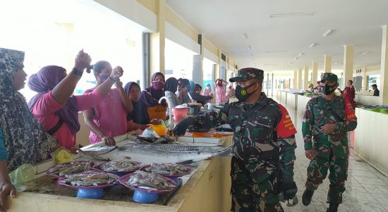 Kegiatan yang diikuti oleh Puluhan personil Babinsa Koramil 1509-01/Bacan dan terpusat di Pasar Modern Saruma Central Bisnis distrik Desa Tuwokona, Kecamatan Bacan Selatan, Halsel, Maluku Utara pada Senin (8/2/2021).