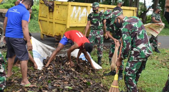 HALSEL, CN – Menyambut hajatan HUT Kodam XVI/Pattimura yang ke-22 yang akan diperingati pada Tanggal 15 Mei 2021, Kodim 1509/Labuha menggelar Karya Bakti pembersihan jalan raya sekitar di Kampung Makian Kecamatan Bacan Selatan Kabupaten Halmahera Selatan (Halsel) Provinsi Maluku Utara (Malut) dengan menggandeng BPLHK Halsel, masyarakat Kampung Makian dan sekitarnya, Senin (10/5/2021).