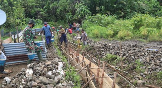 Dalam pembuatan Drainase, kekompakan antara Tim Satgas TMMD, Polri dan masyarakat terlihat sangat semangat kebersamaan serta semangat kekeluargaan.